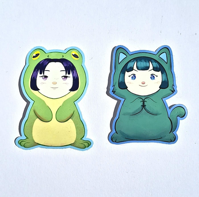 These stickers are roughly 7 cm tall and 5 cm wide.
